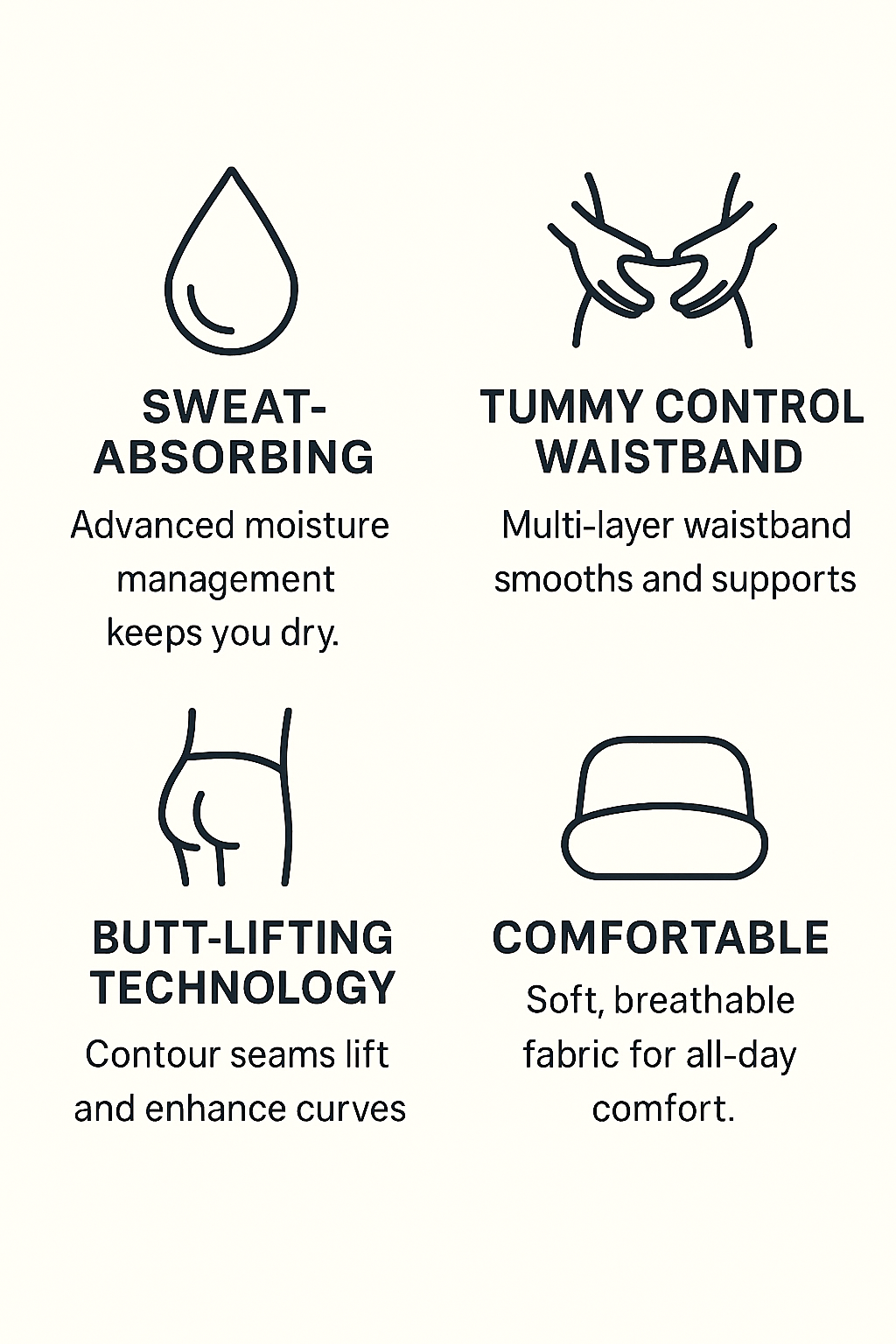 - Butt-Lifting Design: Strategically placed contour seams enhance and lift your natural curves